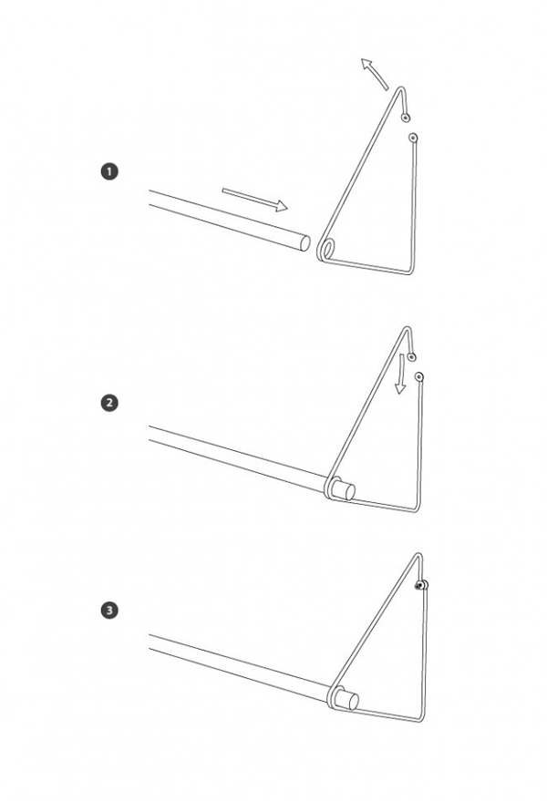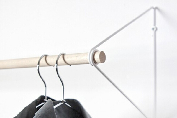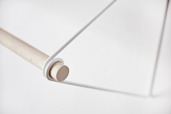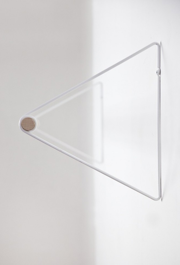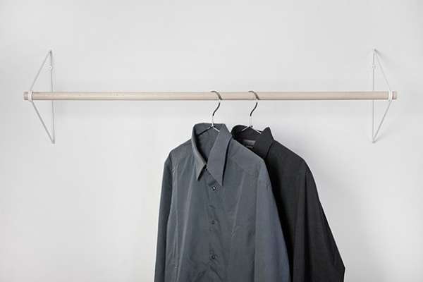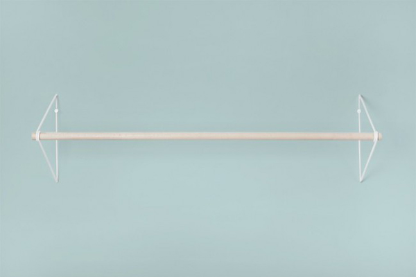 Fifti-Fifti 带来的 春天/Spring 是一款兼具装饰性的衣帽架,这衣架已经简约到如果不挂衣物你可能都感觉不到它的存在。受传统的弹簧结构启发,这一极简的设计由两个三角形钢架和一根榉木棒组成,只通过两根螺钉即可固定在墙壁上,可承重15公斤内的衣物。