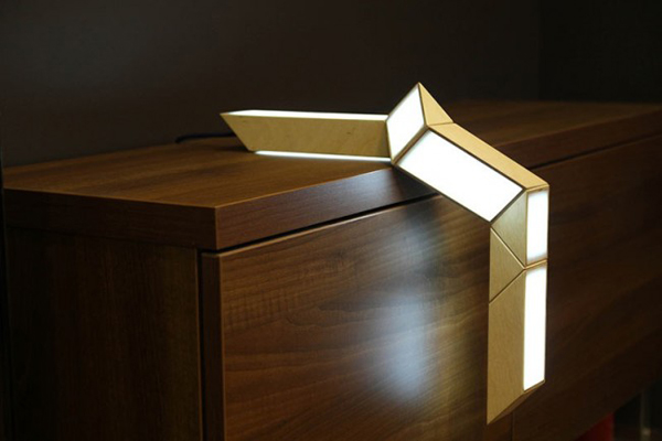 这是一个名为 5+5 Lamp 的变形台灯,它的设计主要启发于 70年代的一致玩具,这个犹如玩具的创意台灯各个部件都可以进行360度的旋转,部件之间产用的是通铰链相互链接,它可以任意的拼出二给三维的形状。当然它的实用性不仅仅体现在照明,还可以用于放在家居当做挂件一样装饰起来,要知道创新产品的真真谛不仅在于它的新奇想法,实用性也是评判它是否成功的重要因素。