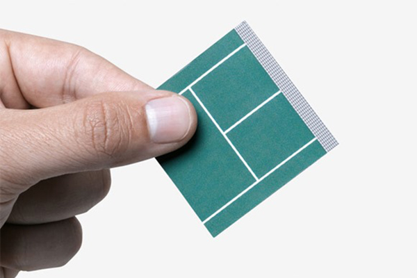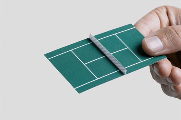 下面的这个创意设计是专门给那些经营网球场或者体育项目的生意人的,名片本身是对折的,与其它人交换名片的时候对折给对方,当打开时候就变成了一个网球场的样子。是不是从上到下都充满了与众不同呢。