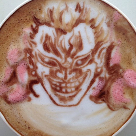 知道有什么东西比拿铁艺术还碉堡嘛?那就是彩色拿铁艺术。日本的一个咖啡手艺人已经开发出了这门技术。艺术家 Nowtoo Sugi 利用彩色的调酒糖浆,在咖啡上画出可爱的图像,然后就变成图上这样惊人的咖啡。看看这门让你震惊的艺术吧!