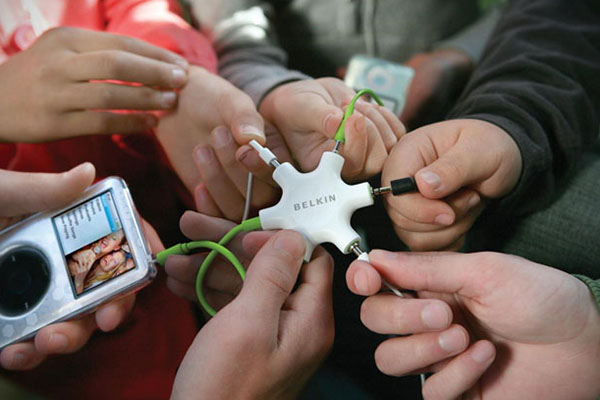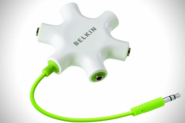 多新奇(http://www.duoxinqi.com)下面介绍的这个创意产品是一个非常实用的音频分享接头,它可以使一个音源分成五个音频输出,有了这个妈妈再也不用担心我有好的音乐没办法跟多个朋友分享啦。