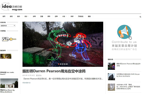 推荐理由:灵感日报网站热衷分享全球最新创意、设计、艺术等相关内容,以我们自身的审美与价值取向,在网络海量资讯中过滤出有价值,有美感,有看点的内容,适当加入观点后再次分享给读者。