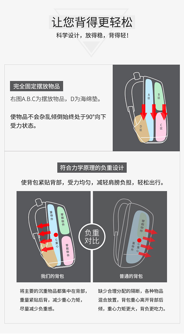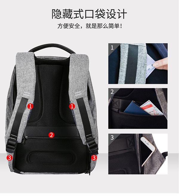 这是一个外表看上出有点普通,但是内在却充满“力量”的神奇背包,这是一款安全防盗高逼格的包包。这款名叫蒙马特号的包包也被称为小偷克星,它采用隐藏拉链,开口紧贴背部,让小偷无从下手,就算是多年混迹石鼓路的江洋大盗也欲偷无门。蒙马特的口袋设计,可以电脑、平板、文具、雨伞、水杯、杂物,大家各归其位。