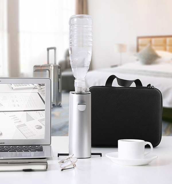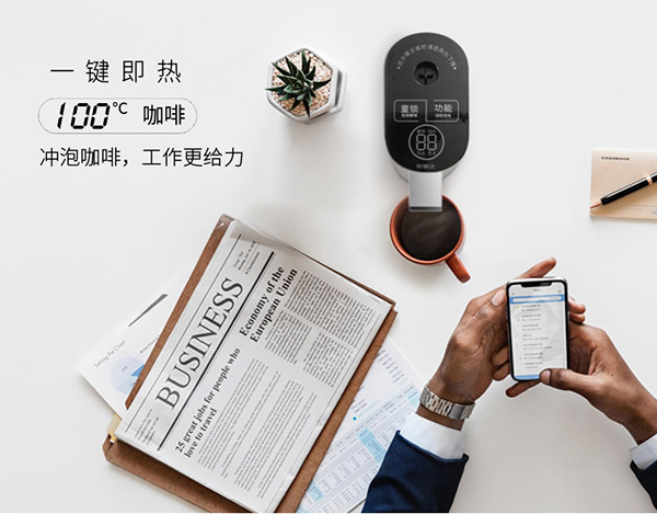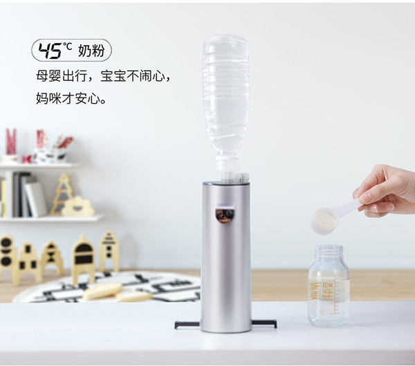 很多人外出旅行时担心酒店的热水壶不干净,这个充满创意的口袋饮水机只需要把矿泉水装上,按下开关只需要3秒就可以出热水,省时省力。并且可以定义出水温度的设计,无论是泡茶叶冲咖啡等等。