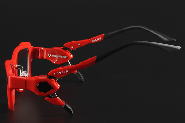 目前,市面上的很多游戏眼镜,只要跟耳机一起带上,就会出现勒耳朵、压迫太阳穴、勒痕等问题,极大的影响体验感。为解决传统眼镜跟耳机一起佩戴时对耳朵和太阳穴造成的压迫问题,专门研发生产了一款GODEYE防蓝光加一键变形眼镜。GODEYE在防蓝光、防多种有害光线这些基础上,独创一键式镜腿变形设计,改善了传统眼镜与耳机同时佩戴时不舒适的问题,有效避免了眼镜对耳朵和太阳穴压迫的痛点。