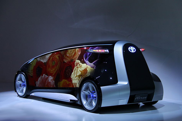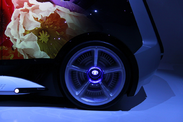 这是一款丰田Fun VII概念车,流线型的黑色造型就相当吸睛,设计概念在于车子就能提供乘客即时的客制化视觉内容,触碰式萤幕的车体外壳,不管是车内或车体都能够播放影像、图案等。在车的两侧还有LED的屏幕显示可以通过触屏的遥控对车进行控制。