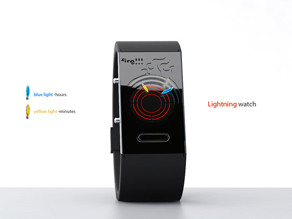 现在越来越多的人把手表当作是时尚品味的象征,而且很多手表还含有许多高科技要素。简约新概念的热火手表正是如此,它的时针和分针是由发光二极管供电,模拟打火机点燃一个香烟的形态,时针和分针就像正在燃烧的火焰一样。是一个非常酷非常概念性的设计。腕表的时尚的简约性也更是吸引了许多青年人来佩戴。设计师Andy Kurovets。
