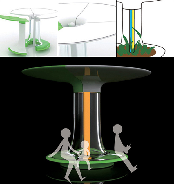 北京的空气实在是越来越差了,全球的城市空气质量都在下降,在这个肮脏的城市,我们都渴望能够得到清纯新鲜的空气来供我们呼吸,甚至想去乡村或者森林里拥抱大自然,又觉得长期这样做不切实际。但是现在清新空气的环形公共休息小亭(又叫新鲜空气椅)或许会给我们带来一些希望。新鲜空气椅呈环形设计,使用清新的绿色与牛奶色为主调,中间是提供清新空气的植物。