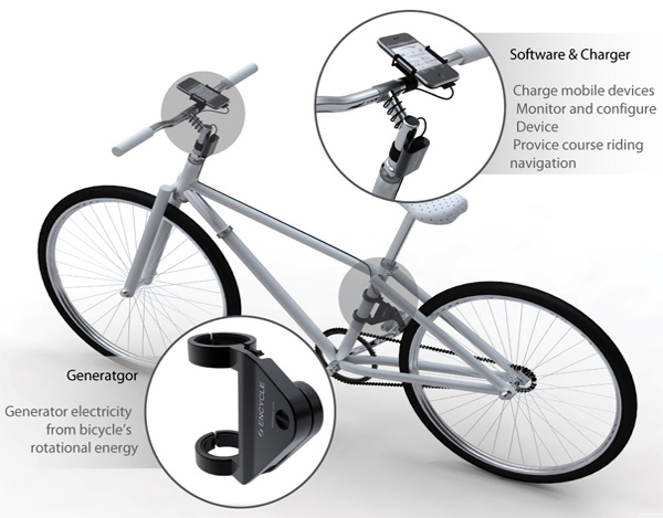 这个表面上看去像是普通的自行车可是不普通哦,因为它是可以对外进行充电的,当然是在骑自行车的才会发电,原理很简单了,就是在自行车骑动起来的时候在轮胎的带动下将动能变能电能,然后给iPhone手机或者其它的移动设备进行充电。在全国环境日益恶化的同时希望可以开发出越来越多这样节能的交通工具。