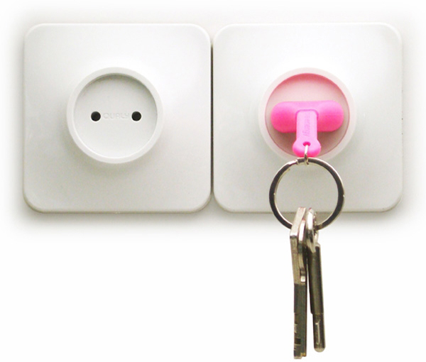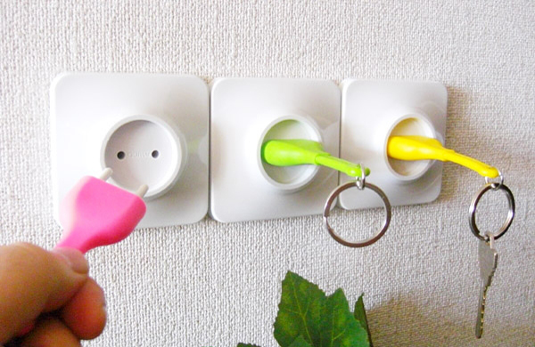 看看下边的这个钥匙链是不是以为要疯啦,拿钥匙往电源插座上插啊。实际上,这是一套钥匙链,它的用处就是可以更加方便的管理好自己的钥匙串,是否经常会把家里钥匙乱丢后找不到,是否会苦于不知道将钥匙放在哪里才安全,有了这个一切就好办多了。将这个里这的插座贴在门口经常放钥匙的位置,然后把钥匙链上的插头插在这个上面,一切就方便多了,再也不会忘记将钥匙放在哪里了,也不会将钥匙乱丢乱放。淘宝购买