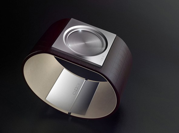 下面是一款设计简洁的产品,也一种司空见惯的物品:手表。在它上面,传统和现代各自的表现都恰到好处,老式机械和新电子技术和谐地融为一体。佩戴者阅读时间的方式类似于以前的机械指针钟表。2条LED光源线代表指针,其中一条比另外一条更长些也更宽些,同时运行在一个小圆盘内,这个圆盘又正好内嵌在方形外框的中心。不过,有些时候时间可能需要猜的,因为两个数值间的距离挺近的,想看到真实的地址要养成一定的习惯。