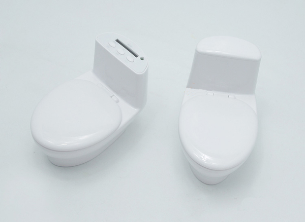 这不是马桶,这是音箱。小身板,大音量,做工精致,颜色,清爽透亮。放在桌上即是音响,一件工艺品,现在哪款音响不上百的,性价比超高。马桶上的冲水按钮是可以插卡的,插入SD卡后开启音响,音响会自动读取SD卡内的MP3音乐。或直接连电脑、笔记本作为音响。插卡款可蓄电,携带方便。不插卡款,可直接作为手机、MP3,电脑的外接音响 ,让音乐无处不在,随时随地享受。