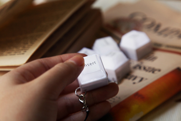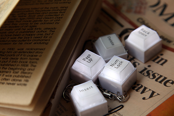 又是一款与键盘相关的新奇产品,之前多新奇曾经介绍过与键盘有关的键盘抱枕,下面的这款是手机上的钥匙链,按键的大小与真实的键盘按键基本相同,钥匙链上面的键盘是可以发光发亮的,用手一按即可发光,在漆黑的夜晚甚至可以用它来当钥匙孔的照明灯哦。而且有不同的键盘按键可供选择,但都是功能性的按键。
