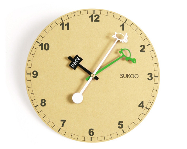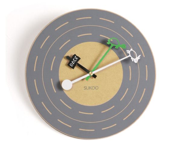 龟兔赛跑时钟指针上的突破性设计,配合简洁的松木板表盘,可以诠释崭新的龟兔寓言,白色的小兔加上绿色的小乌龟。圆形表盘由E0级进口纯松木MDF板切割而成,自然环保并且散发淡淡松香,超简洁的结构设计,遵循了少即是多的设计原则,采用高品质静音扫秒机芯,走时准确,没有声响,不会影响睡眠,适合居室使用,时尚个性的时钟设计,适合各种风格的现代家居环境。淘宝购买