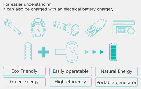如果你在野外,并且你的电池电量用完了,那么这个电池就一定会对你有用。这是星火奖的获奖作品吧。当这款电池没电时,只需旋转一下,内部缠绕螺旋的线圈根据电磁感应原理就会产生电量,然后把电量传到上面储存起来。加上之前多新奇曾经介绍过的可用15年的手机,郊外旅游的绝配啊。