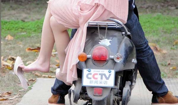 近日,广西大学东校园图书馆边上,一名男子用电动车载着一美女赏花,车上挂着山寨央视采访车的牌子。有过有网友回复的更多关于此图片的内容是在这张图片的腿上,对于这张图来讲,摩托车上的车牌照是一个新奇点,摩托车上的腿也是一个新奇点。