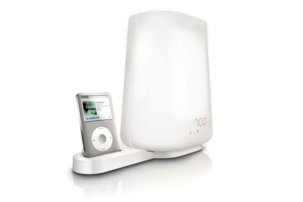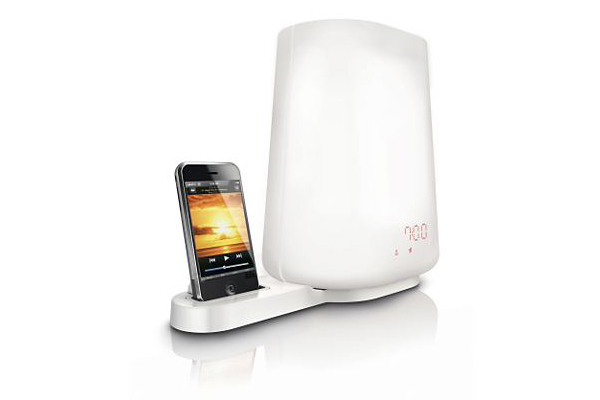 飞利浦推出的HF3490闹钟灯最大的一个亮点是当闹钟响起的时候,HF3490可以在房间内模拟太阳升起的过程,让你在床上就能“观赏”到日出的整个过程,同时,还有一个可放置iPhone产品的插槽,在灯光缓缓亮起的时候,HF3490能通过iPhone或者内置的FM收音机播放音乐或者广播节目。不得不说这是一个很有创意的产品设计,至少在现在的社会里,能在床上观赏到日出的机会肯定不多。
