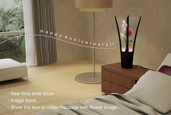个性化的短信,可以是文字也可以是视频,能够和鲜花一同发送。花瓶自带的灯光也可以根据使用者的喜好改变颜色。matsuyama的设计方案在designboom和FUJITSU富士通公司联合举办的竞赛“未来计算机生活”中,从1000名参赛者里脱颖而出。