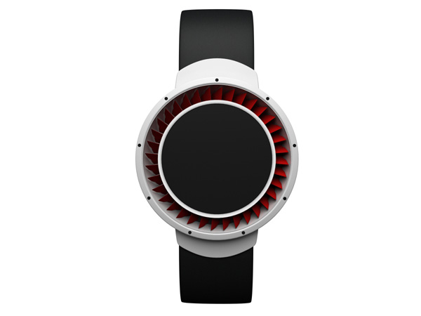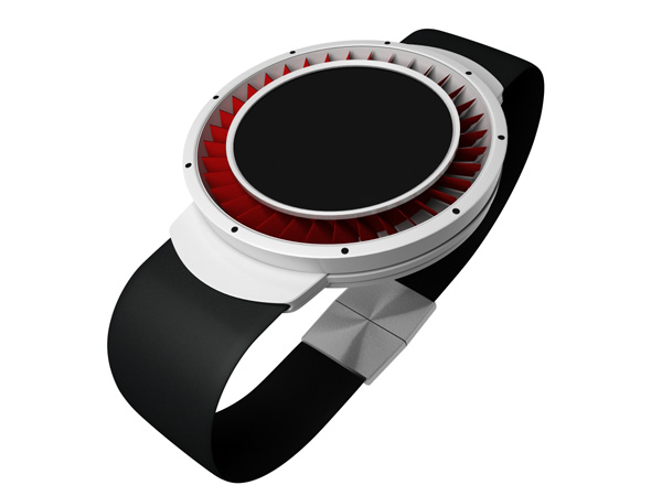 这是一个可以一遇风就会显示时间的手表,原本的手表表盘是不显示时间的,但是一遇到见就不一样了。需要看时间的话,让风叶的叶片转动吧,至于你是用嘴吹动的还是风刮的它都不在乎,会给你显示一下时间,短暂的几秒,但是从看时间的角度来讲的话应该就够了。