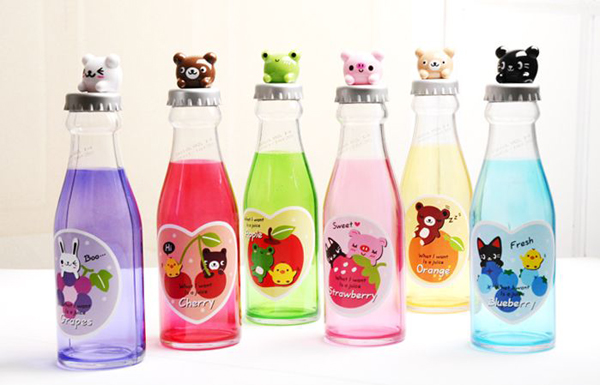 这样可爱的颜色,清亮晶莹的塑料瓶,加上内部染色的鲜艳色泽,还有卡通图案的标签以及生产日期的喷码,让这款汽水瓶变得真实而形象,真好像是真的汽水一样。当然了,这只是外表,这样可爱的汽水瓶实际上是个储钱罐。记得在超市里看到过和这个一样可爱色的香槟酒就是非常的喜欢。淘宝购买
