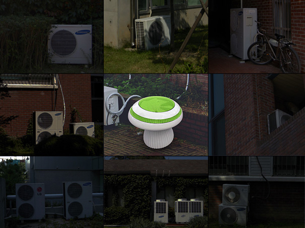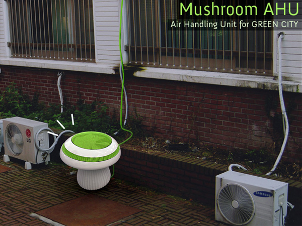 在我们的传统概念中,空凋的外挂机的形象一直是那个巨大的立方体金属盒子,挂在建筑物的外围使建筑物的外部形象大打折扣。但是蘑菇外形设计的空气调节装置的出现大大改变了我们的传统印象。显然,蘑菇的外形本身就如同一个空气转换器。总有一天,墙面上,屋顶上不再是千篇一律的金属盒子,而是形形色色相拥成簇的“蘑菇”。
