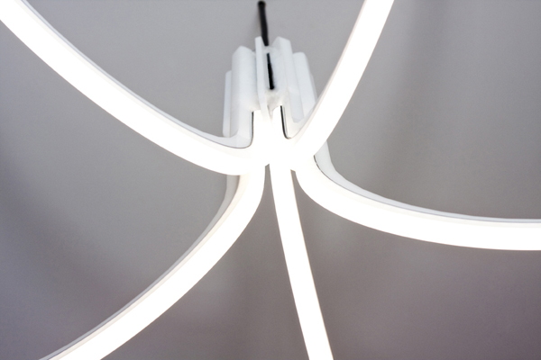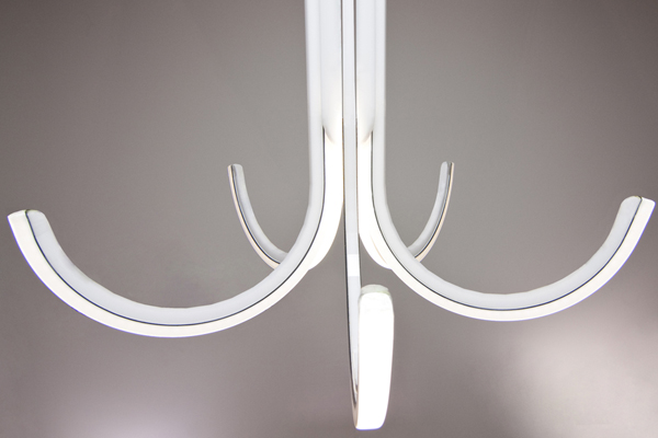 我们常见的灯泡都是环状或者是直管造型,这一款与众不同的LED灯具来自加拿大,在五根半透明树脂材料里包裹了五条LED灯管,用清新素雅的LED灯重新诠释了吊灯的华丽低调。现在不是有一些装逼小青年所说的低调的奢华大概就是这样一种感觉吧。