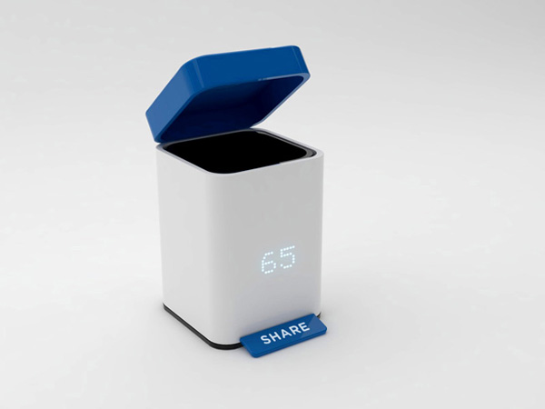 这是一个带有只能智数功能的垃圾桶,它可以对丢入的垃圾进行有效的统计。垃圾桶在桶体上设置了一个LED的数字显示屏,当用脚踩下踏板时数字就会增加,从而记录丢弃垃圾的次数。不过它并不会对垃圾的具体重量和面积进行统计,只是在原来的基础上加上一个记录功能。