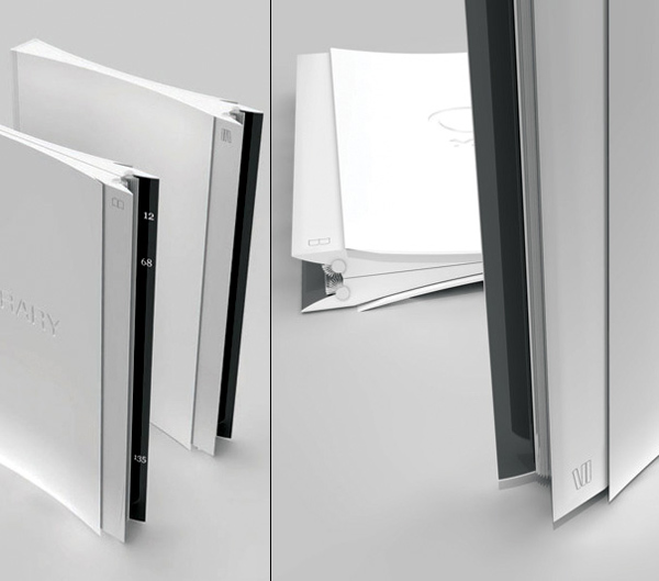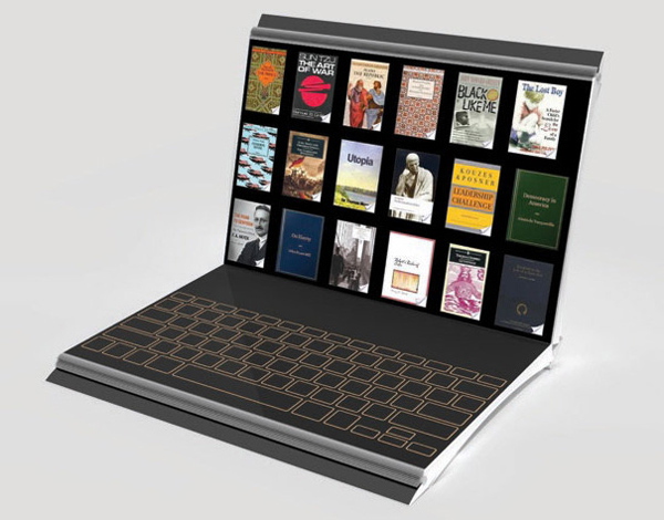 这是一款与现在流行的电子书不同的电子阅读器,多数电子书阅读器都是方方正正的电子设备,比较呆板。这台新概念的电子书阅读器采用图书的样式,可以让读者通过拇指一个翻动机械棒来操作电子书的翻页。这款电子书阅读器的屏幕采用了触摸功能,支持多点触摸技术来放大和缩小部分页面。此外,这款设备还采用了键盘模式,旋转90度就可以打开键盘功能,像笔记本一样,可以方便快速的寻找需要的图书。