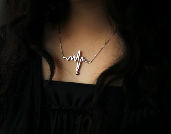 酸奶无味是中国的一个创意品牌,这是酸奶无味的一款心电图样式的项链,项链的吊坠样式非常的特别,是一个心电图的样式,心动项链,锁定一段心跳的频率,采选925纯银以苛刻工艺标准精心打造,链子及项坠均为925纯银,总重约8g链长40cm,加5cm国际标准延长链。送给心爱的人一定会非常的有意义。淘宝购买