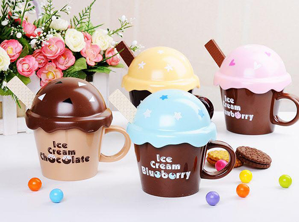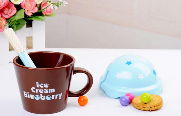 非常可爱的冰淇淋水杯,杯盖上有个缺口能把勺子卡住,形成一体,杯盖是磨砂和光亮面相间的冰淇淋造型,非常的很可爱,也很有夏天的感觉,炎炎夏日,用这样的一个怀子喝水就会感觉到非常的凉爽。每个杯子外面都有独立的纸盒包装,送人也是很好的选择。淘宝购买