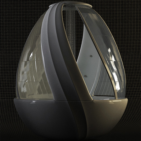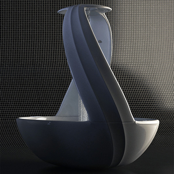 这是一款鸡蛋造型的沐浴系统,两侧的玻璃门可以方便推拉,淋浴喷头就在蛋的顶部,底部的稳定结构可以当做浴缸,既可以淋浴液可以泡浴。浴缸的部分设计有一些水力按摩设施,配上灯光,很有味道的感觉,在家里装一这样的一个沐浴系统,洗澡也变得非常的有乐趣。