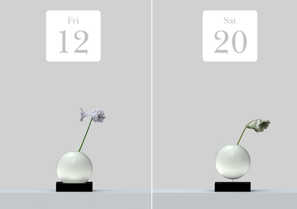 漂亮的花瓶设计一般是窄口的,而且瓶身也不透明,用眼睛去看也不是特别的容易。这款花瓶则不需要你再去看就可以告诉你需不需要加水,它的工作原理很简单,利用磁铁同性相斥。花瓶的底部和底座上的磁铁是同极,互相排斥,当瓶中的水的重量足够大时,瓶身的压力大过磁铁的排斥力,花瓶就会放置在底座上,但随着水的减少,磁铁的排斥力就将花瓶推举了起来,这样花瓶中的水就可以一目了然了。