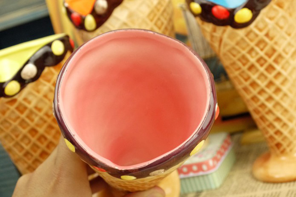 是不是一天夏天的时候在路边的小商铺就经常会看到这样的冰淇淋,这个不要以为这是冰淇淋哦,它是一个水杯。水杯的材料是彩绘陶瓷,怀子里边的颜色也是非常的鲜艳,放在家里使用,怀子外面的可爱图案更是家中茶几饭桌上的的一道亮丽风景线,如果你是个喜欢吃冰淇淋,但是怕胖的人,就在家里使用这样的水杯解解馋吧。淘宝购买