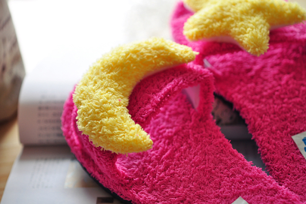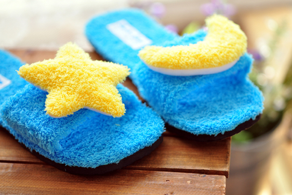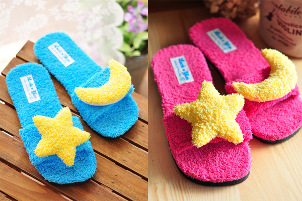 这样一双非常有爱的拖鞋,家居的时候穿非常的有爱,拖鞋的一边是月亮,一边是星星,拖鞋采用毛巾材料,穿起来非常的柔软舒适,鞋底是泡沫复合底,如果遇到水的时候可能会有些滑,不过这也没有关系了,因为这样的拖鞋总不能在洗澡的时候还穿着吧。淘宝购买