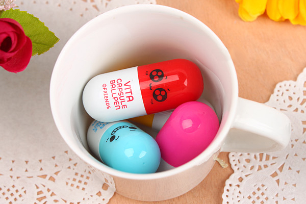 这是一个非常有创意新奇的圆珠笔,它的上面满是可爱的表情,笔是可以进行自由伸缩,缩起来后就像是一个药丸,而且每个药丸上都有可爱的表情,非常的可爱。有多种表情表现出来,傻笑、坏笑以及眨眼等都非常的有创意。淘宝购买
