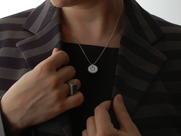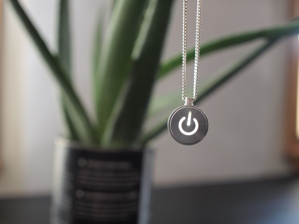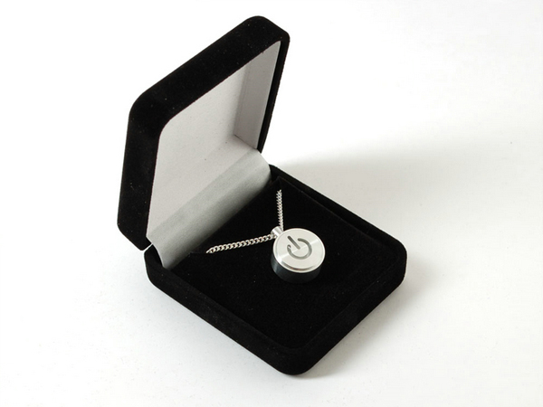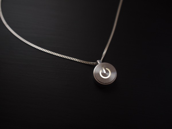 这款iNecklace项链是由Adafruit公司推出的一款纯金属材质项链,它的外形模仿苹果Mac的电源开关,整个项坠由特优级铝合金数控切割制作而成,内置纽扣电池,可以像电源开关那样控制它的发光,如果持续点亮,电力可以持续72小时。项链是纯银材质,长度45CM,灯是以呼吸闪亮的方式呈现。淘宝购买