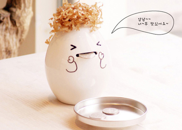 之前多新奇曾经介绍过好多与存钱罐有关的产品,都非常的有意思,下面介绍的这个存钱罐是鸡蛋样式的,同样是非常的可爱。来自韩国的创意,设计师以可爱的蛋壳模样设计的存钱罐,可以存放进200个1元的硬币。鸡蛋是陶瓷材质的,可以在光滑的陶瓷表面上用各种水性笔DIY画出自己的蛋壳心情。存钱的同时也让自己变的愉快些吧。淘宝购买