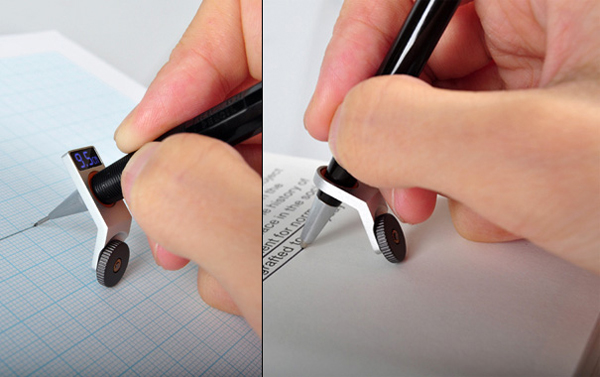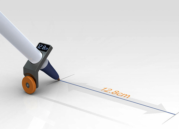 在学校上几何课的时候总是会备上一幅尺子,这款新设计将会帮助你摆脱这一束缚。这款设计名叫Constrained Ball,纵使不用直尺一样可以帮助你画直线,从此省去了尺子和三角板。而且还可以计算出画了有多长的距离。这款书写工具可以使笔尖上的圆珠朝一个方向滚动,从而消除了弯曲的线条。套在笔上的测量圆环还可以读出所画线条的长度,并在上面的小屏幕显示。Constrained Ball 不仅能画出水平和垂直方向的直线,甚至可以画出45°角方向的斜线。
