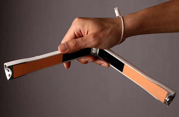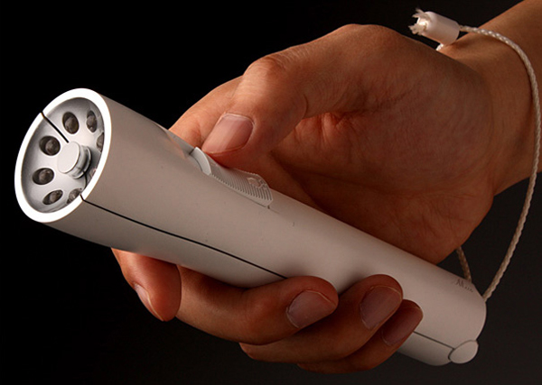 这款手电筒是一款折叠设计,是可以对边打开的,当把手电筒分裂拆开后就变成了一盏灯,用尾部的绳子可以吊起来当做固定照明灯使用。合上后又变成了一支手电,它采用太阳能充电,外出旅行的时候带上一支,可以应急。它具有很好的灵活性,而且还内置太阳能板。
