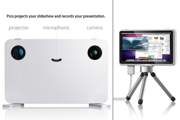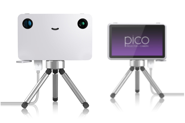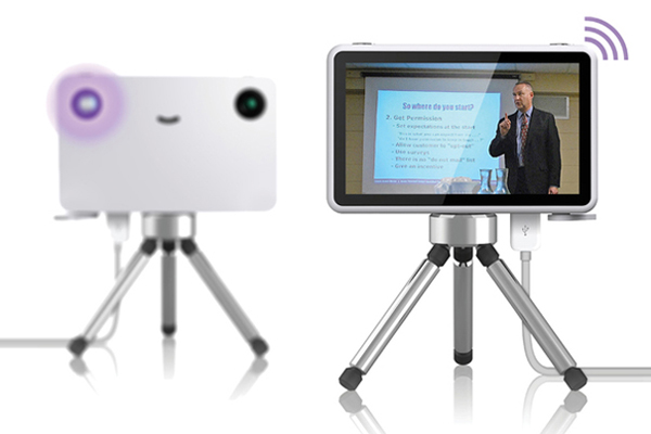 这款数码产品是投影机和摄像机的混合体,它的“左眼”是投影机,“右眼”是个摄像机,而中间的“小嘴巴”则是个话筒,三个位置都有很实用的作用。迷你的卡片机身上集合了投影和摄像功能,简单易用的界面,简洁又可爱。