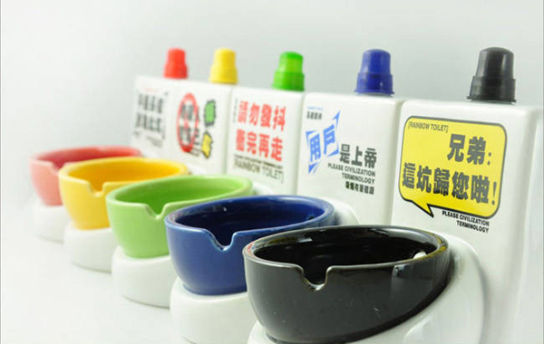 原来马桶能也可以如此的富有创意,这是个小的马桶样式的烟灰缸,有好几种样式和文字,上面都是写着非常有意思的文字。吸烟的朋友都知道,有的时候掐灭烟头有时候也是一个问题,这个马桶样式的烟灰缸里边的“冲水”按钮只要一按就可以出水,然后将烟头熄灭掉。而且迷你马桶烟灰缸是陶瓷的哦。淘宝购买