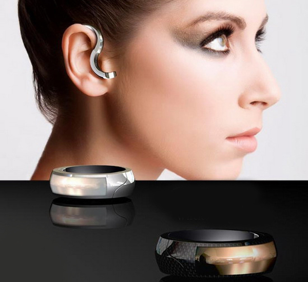 不得不承认科技的进步真是给了人们很大的便利与新奇,来看看下面的这个炫酷的蓝牙戒指耳机,它名为The O.R.B.的戒指蓝牙耳机,是Hybra Advance Technology公司的品牌之一。当它呈环状,保持戒指状态的时候,可以将它戴在手上,然后通过LED屏幕显示来电号码、日程提醒以及文字信息等,除些之外它还能收听语音信息。当要接打电话的时候,只需要将它旋转弯曲,戴到耳朵上,然后进行与通话有关的相关工作。