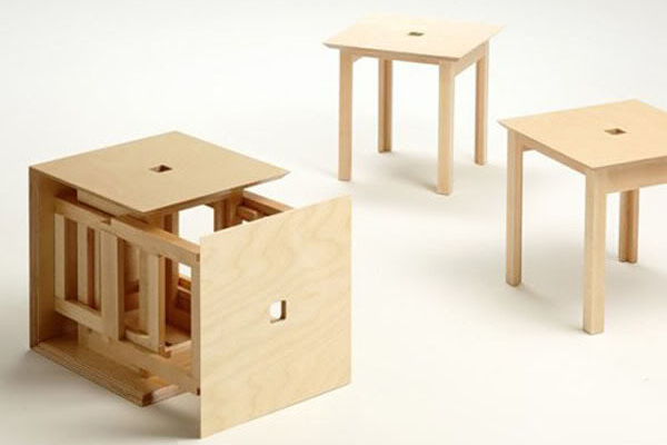 现在蜗居生活的越来越多,生活在城市里的我们对空间的利用感显得越来越重要,下面要介绍的这个新奇家居就是一个可以很大程度上节约空间的凳子,它的整体是一个正方形,但是在正方形的内容放的是6个可拆分的凳子,家里来的朋友的时候凳子不够用,不怕空间小也可以把这6个凳子都安排下了。