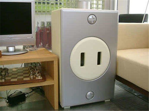 这是一个带有电插头样式的柜子,插头模样的柜子绝对值得收藏,一眼看上去就狠给力,多新奇觉得应该给它定义为概念产品,可是它又是一个实用的家居,总之喜欢新奇的朋友家里值得拥有这样的一个家居,柜子顶部还有一个可伸缩的杂志筒,可以放一些平时爱看的杂志,不使用时可以将其收缩。