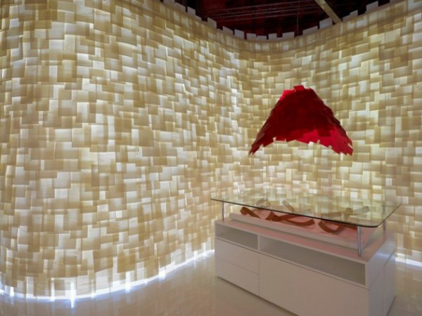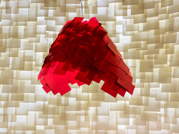 这是一款由西班牙灯具商制造的 Luzifer Lamps 灯具产品,名为“犰狳”的手制灯具相关的新奇玩意。她由数不清的长方形薄木片手工拼接而成,这个灯就像她的西班牙语名字“Armadillo”所比喻的,像是犰狳的鳞甲,这也是大自然赋予设计师的灵感。但是和犰狳坚硬的鳞甲不同的是,她那极具生态感的不规则的形态看上去是那么脆弱。柔和的光线从那些交错的薄木片之间轻盈地透射出来,同时也更强化了材料的肌理。Luis Eslava设计的这一款吊灯有两种型号,生产商Luzifer Lamps用三种不同木色的木片制成了从低调的灰色一直到耀眼的红色、橙色、和绿色的八种颜色的吊灯供人选择。
