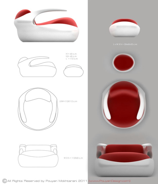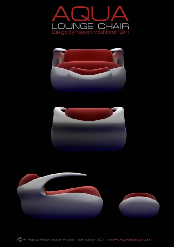这款Aqua安乐椅看起来很舒服,它还是张充水椅,让你夏天坐在它上面并不觉得热。它看起来仿生程度很高,像一条鲸张开它的鱼鳃似的,流线型的外形轮廓像汽车一样吸引人。这款椅子有一个很舒服的表面,坐上去像在水中漂浮一样的感觉。设计师:Pouvan Mokhtarani。