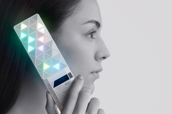 这款几何形的手机设计,它的背部有三角形的LED灯能在你听音乐、做其他应用,以及接电话的时候闪闪发亮。甚至它的充电器也能简约到足够吸引你:把手机放在一个白色的小盒子上就可以充电。或许它不能够跟你功能齐全的手机相比,或许它不够苹果手机的屏幕大,但是它绝对是真正的智能。个人感觉这款手机针对的人群可能比较窄,针对年轻女性来说,会比较受欢迎,尤其是当成新奇宝贝送给她们的时候也一定会喜欢的,就像几年前LG的冰淇淋手机一样,有女性朋友眼里手里的功能随便,外便才是她们所关心的。