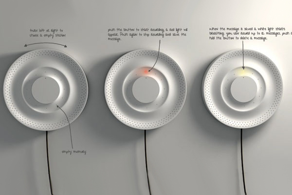 很多时候,你都需要留张便条给你家里人,交代他们不要忘了去做什么事。通常你都会把纸条贴在冰箱门上或者桌子上。这个名为 Record Me 的留言机可以让一切变得更加方便,它提供了一种独一无二的方式去用数字化模拟说明你留下的消息。除了写纸条的方式之外,还可以把你要交代给他人的话语通过语音的方式录下来。这个产品提供了一个有趣而互动的方式来改变传统的纸条留言。对产品的外观而言,简洁又不失美感。设计师:Luc van Hoeckel。这东西是不是特别像多新奇之前有给大家介绍的壁挂式迷你CD播放机。