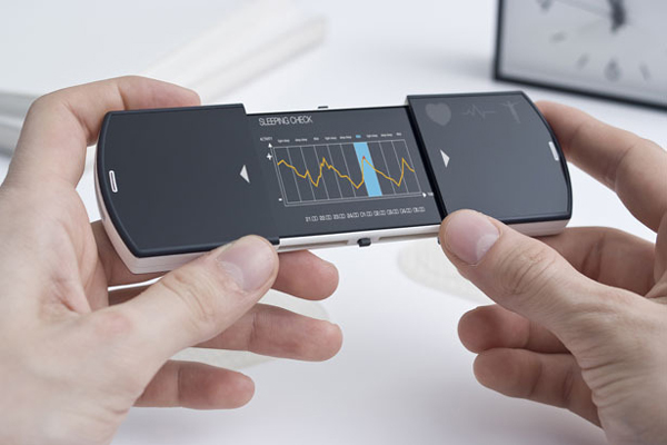 这款名为 Health Assistant Device 从样式上来看是一个手机,但是它不仅仅是一部手机。还有具有测量健康的功能,就是说除了具有手机的功能之外它还能完成医疗设备所需要做的工作。作为针对未来生活设计的一种尝试,这个医学设备的界面设计成像个手机显示屏,能让病人随时查看自己的健康状况。通过这个设备,病人同步记录自己的医疗数据,同时医生也能管理查看病人的身体状况从而根据实际情况改变医疗方式。这个设备有两层装置,外面那层能够像一个手机一样使用,通过它特有的电子墨水触摸显示技术来控制与使用这台手机。并且安排了几个按钮来根据用户设定来达到不同的用途。轻轻地滑开外面那层,里面的显示屏就记录下病人的医疗数据。这样创意的设计方便了病人随时查看自己的状况,假设到急需看自己的身体状况记录的时候,只需轻轻一滑开就能看到,这样比用普通的手机进行N个操作才能进入数据库方便多吧。设计师:Rochus Jacob。