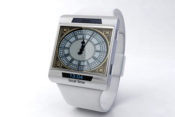 这个手表的创意灵感来自于英国伦敦的威斯敏斯特宫报时钟,手表的表盘就是威斯敏斯特宫上报时钟的样式,设计师给他起了一个很直观的名字:Big Ben clock。它的时间也与大钟的时间绝对的同步,这通过在钟的对面建立了一部摄像机精确地记录古钟的时间,并且通过发送GPS视频信号通过卫星传输到使用者的手表的显示屏上。设计师:Andy Kurovets。